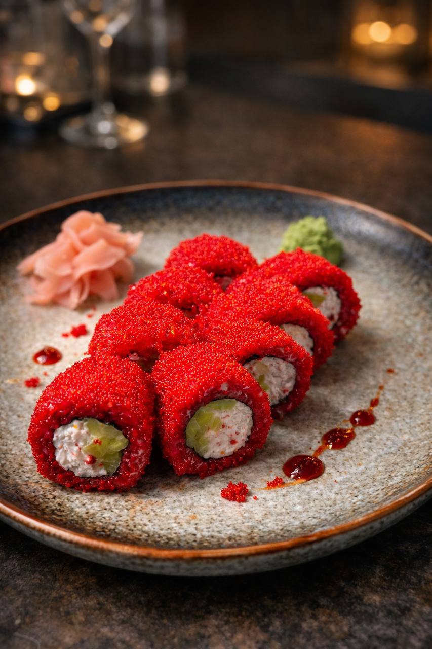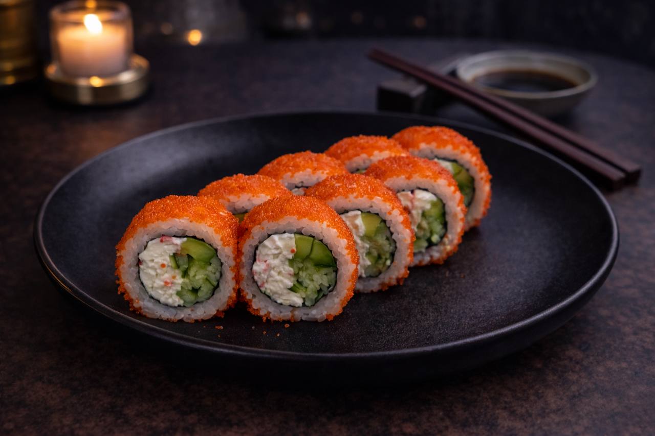 Калифорния с крабом из черного риса