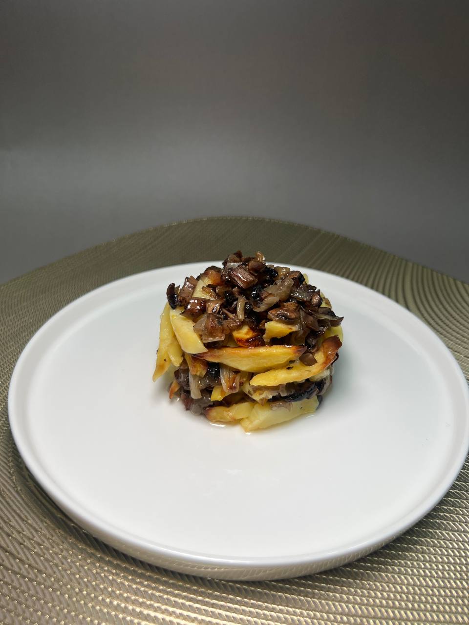 Картошечка очень вкусная. Мясо прожаренное. Все очень вкусно.