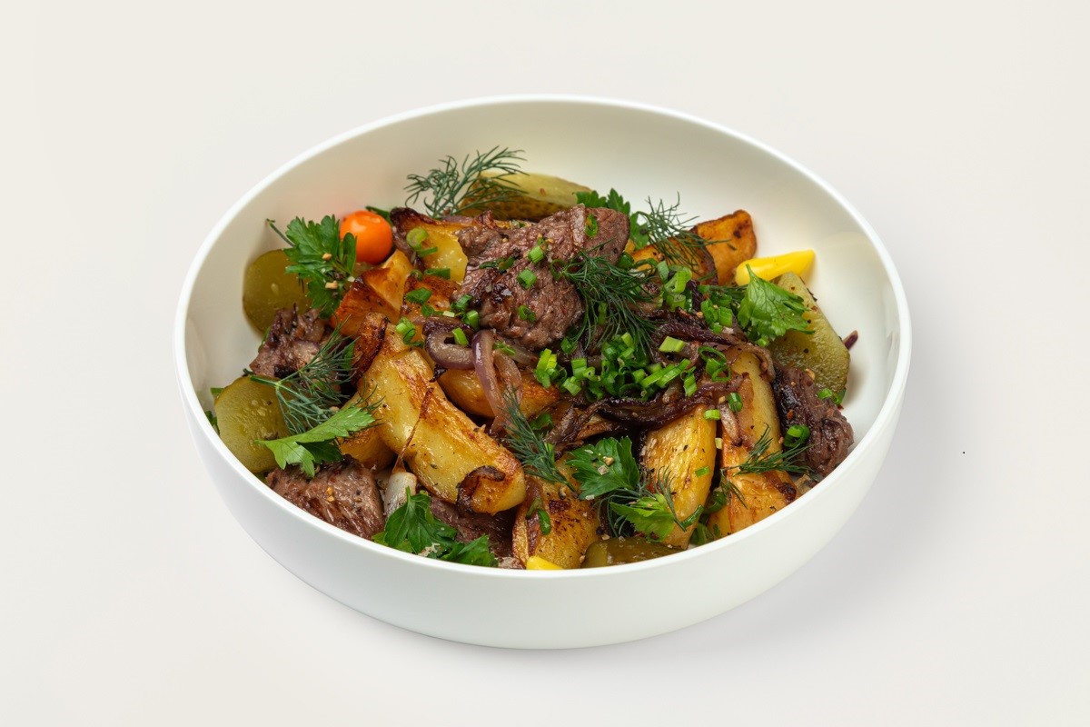 Жареный картофель с грибами и луком
