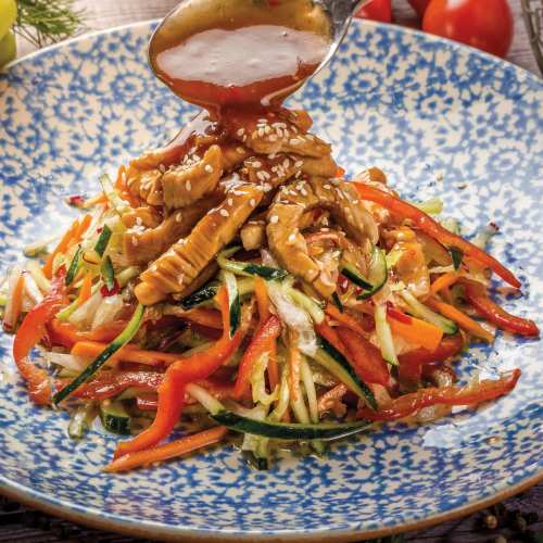 Салат с теплой индейкой под восточным соусом