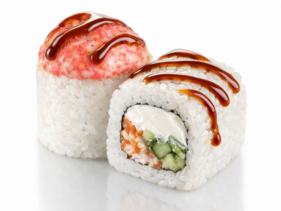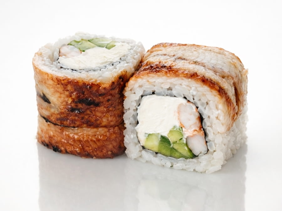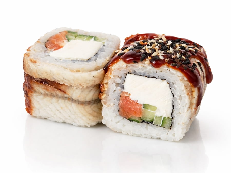 Унаги ролл Угорь-Тунец с Устричным соусом