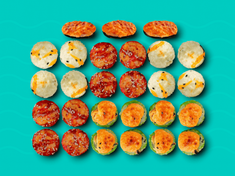 С курочкой и ароматными грибочками, средний, С курочкой, ананасами и карри, средний, Малина с фисташковым кремом, средний