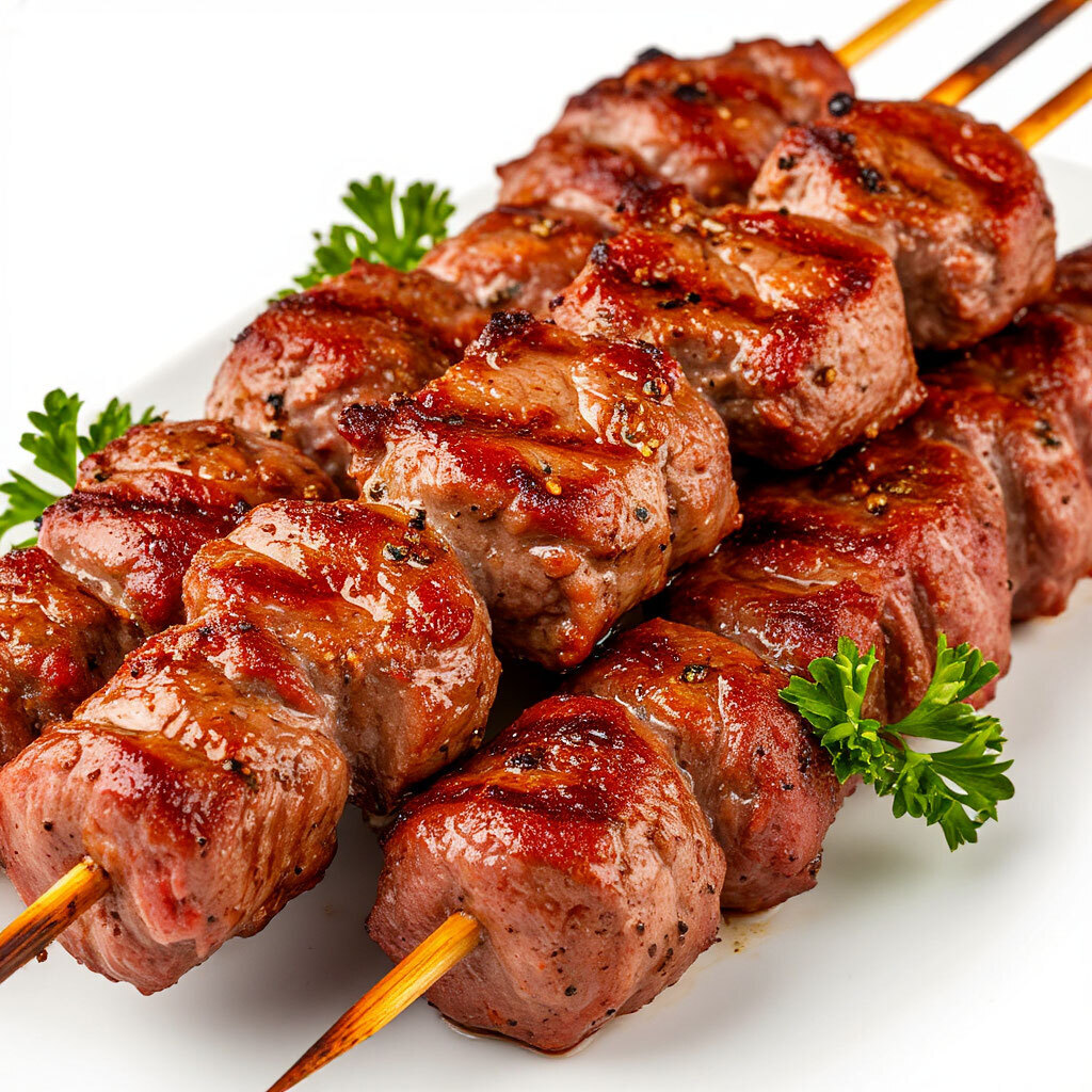 Осетинский пирог с картофелем и сыром, Хинкали жареные с говядиной, Сувлаки с курицей, 2 × Чебурек с говядиной и свининой, Удон с курицей, Удон со свининой