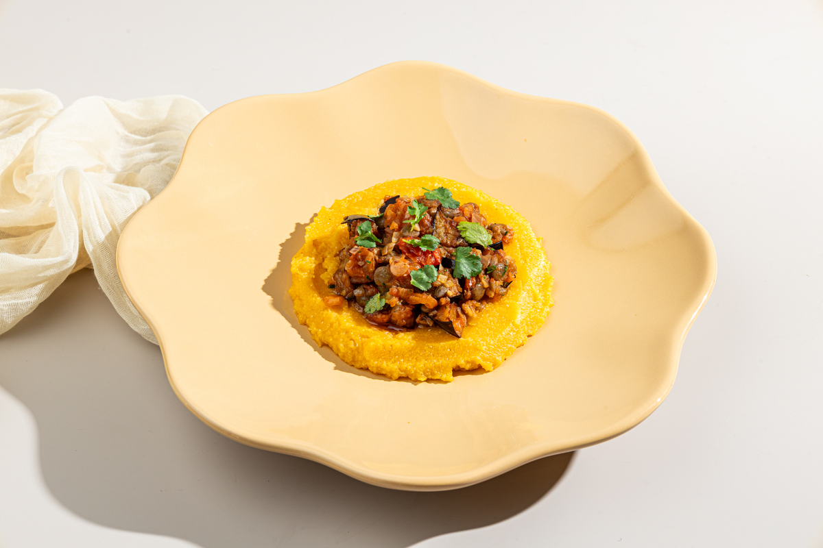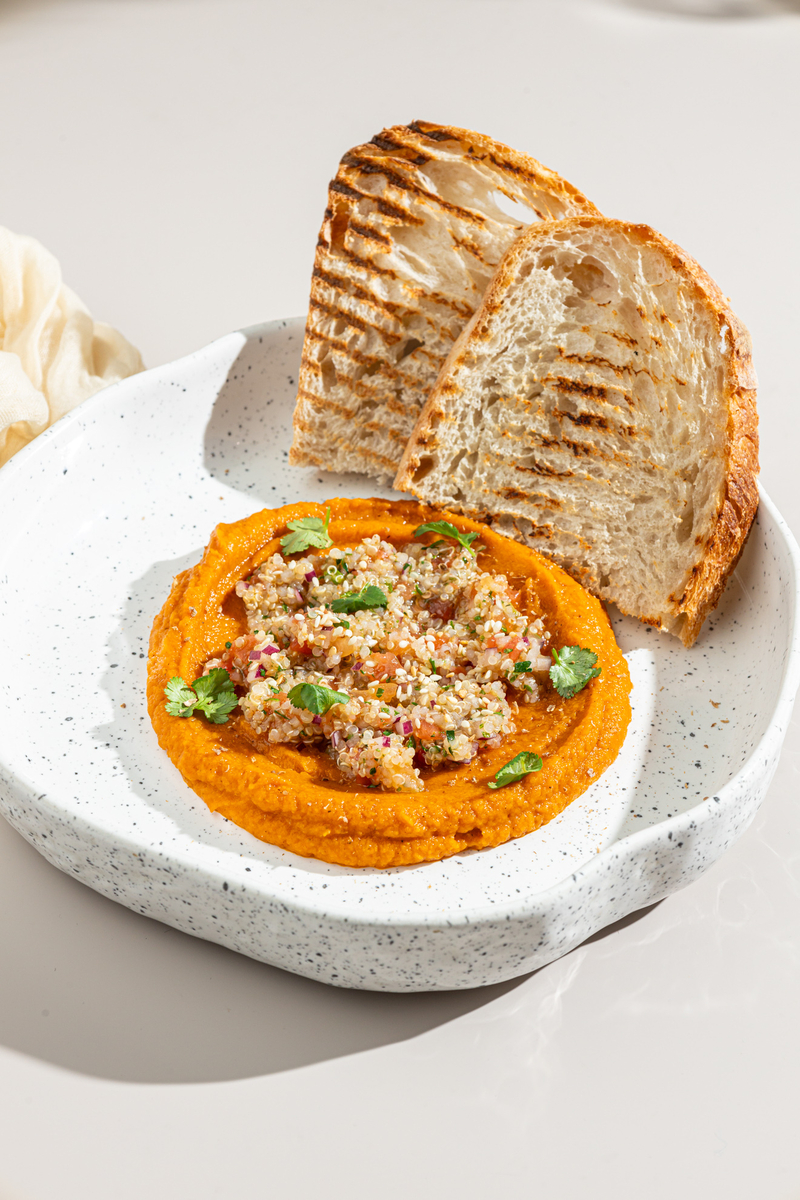Хумус с баклажаном и рукколой