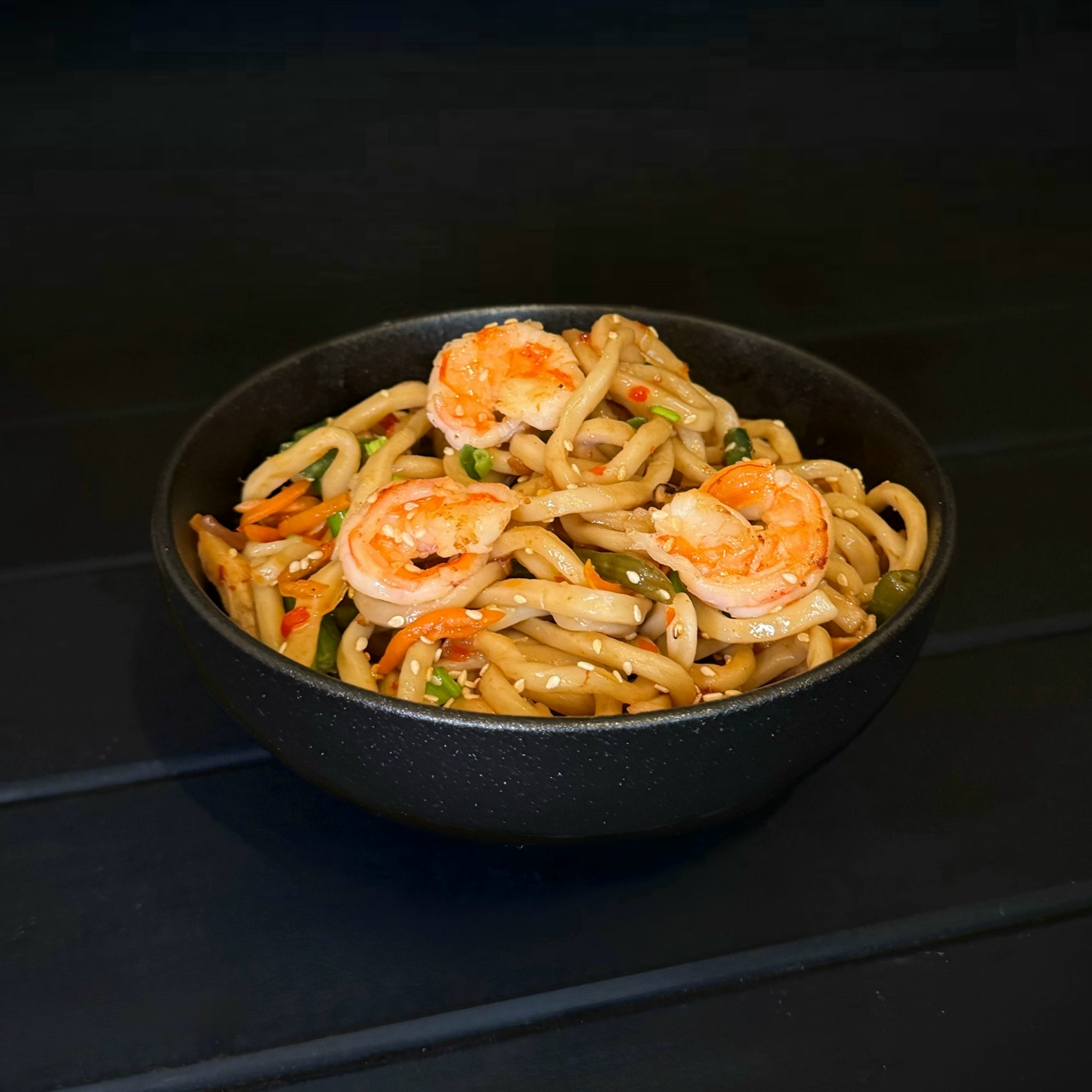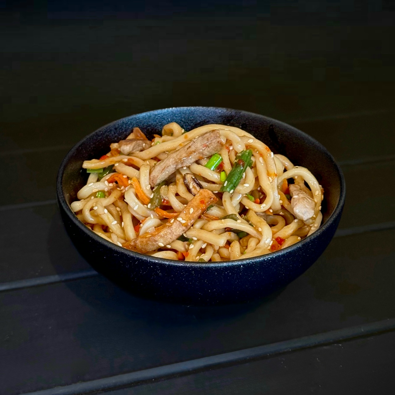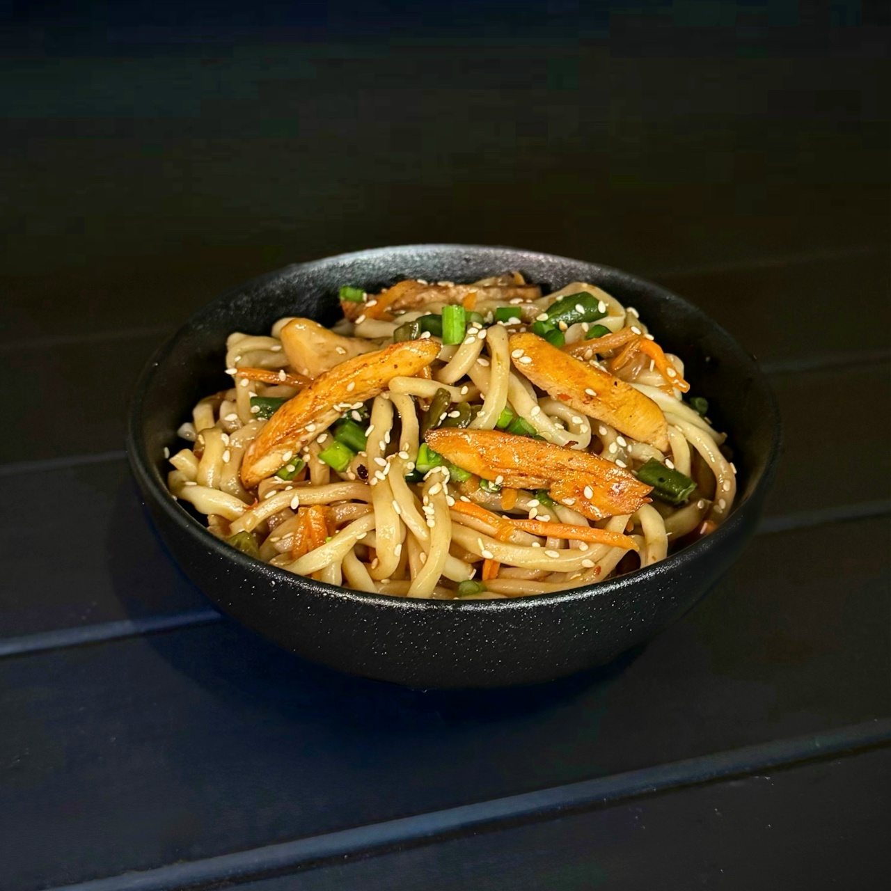 С курочкой и ветчиной средняя, Картофель фри, Удон со свининой в соусе терияки 270 гр, Удон с креветками и соусом сладкий чили, Чикен байтс большие