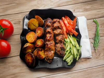 Шашлык из свиной шеи с гарниром, Шашлык из курицы с гарниром, Шашлык из курицы, Люля-кебаб из говядины-свинины