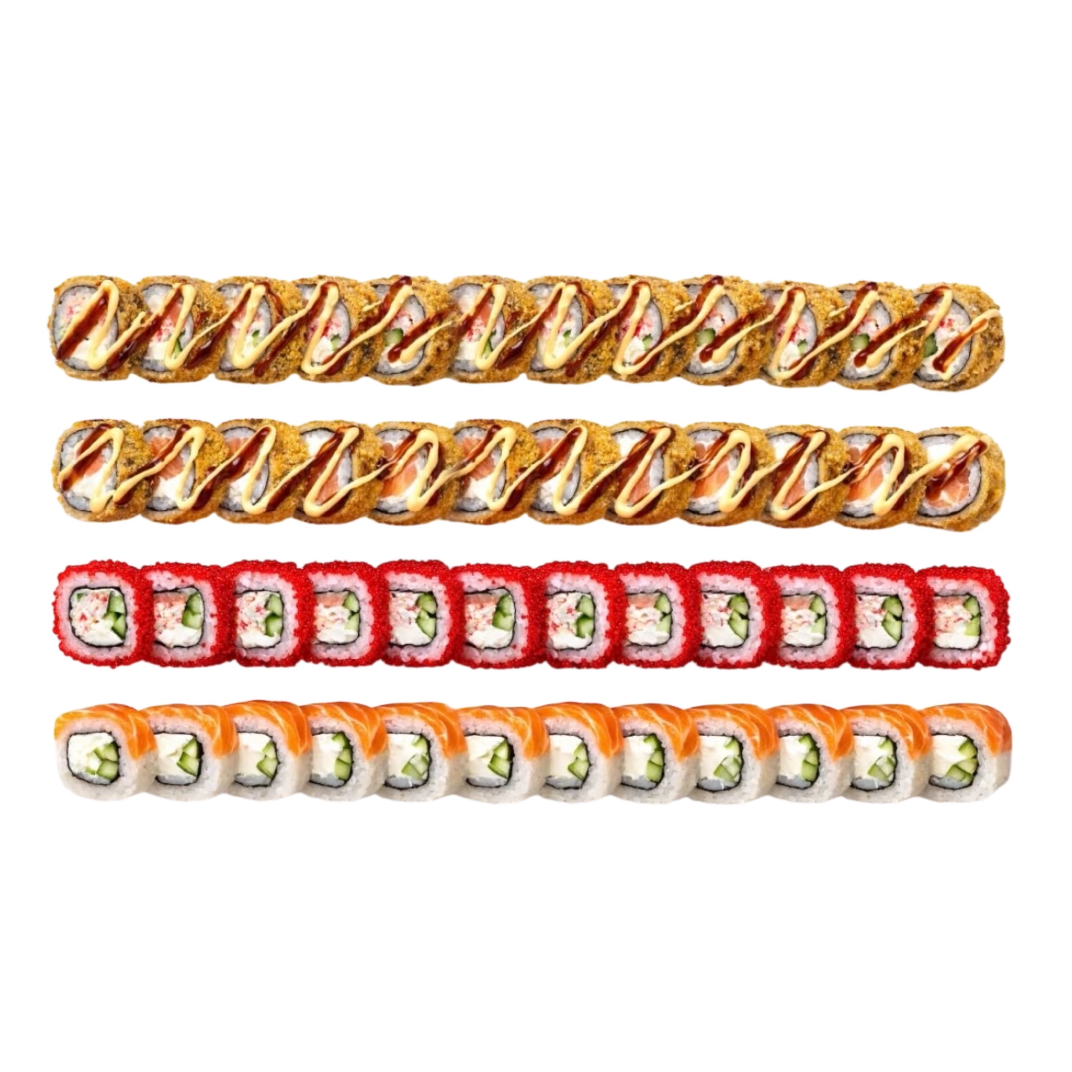 Ролл Грин манго, Ролл Филадельфия классик, Ролл Окинава, Ролл Дракон, Ролл Киото со спайси соусом