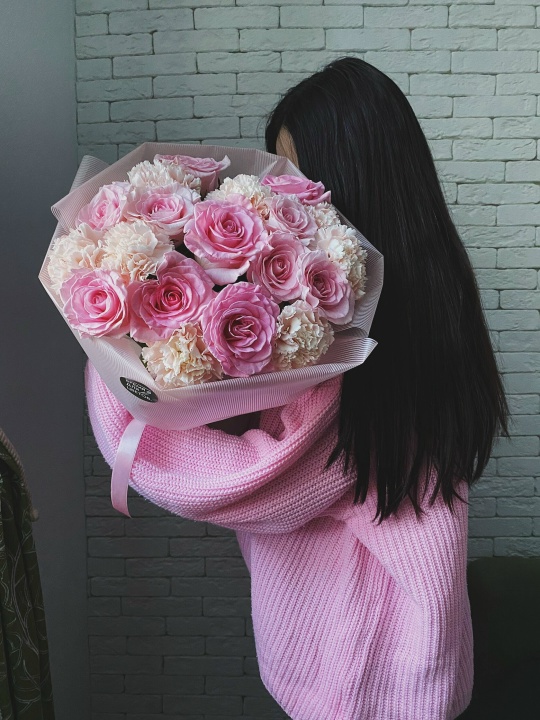 Дуо букет из роз и диантусов